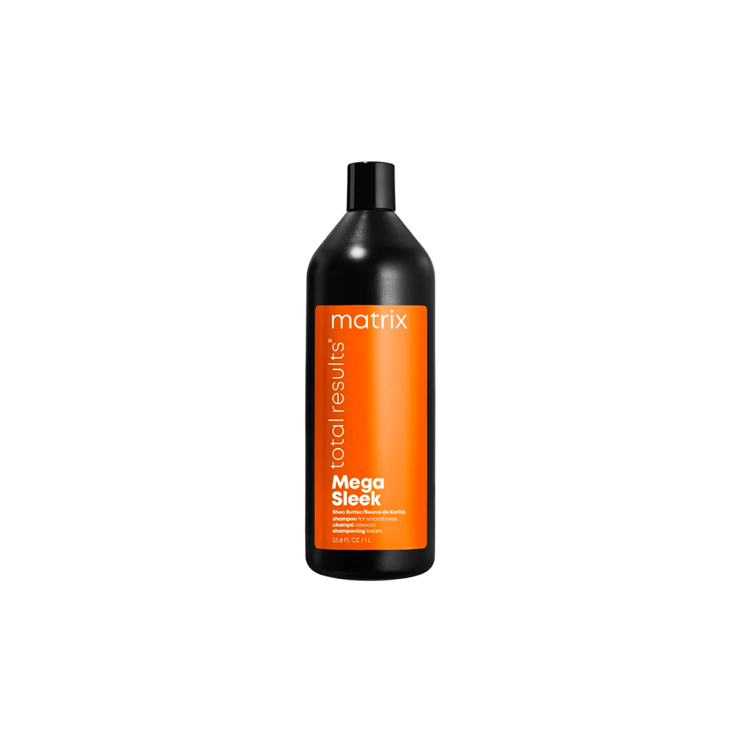 Mega Sleek Shampoo contiene manteca de karité que ayuda a controlar el cabello rebelde e indisciplinado. Maneja el frizz y controla la humedad para dar suavidad al cabello.