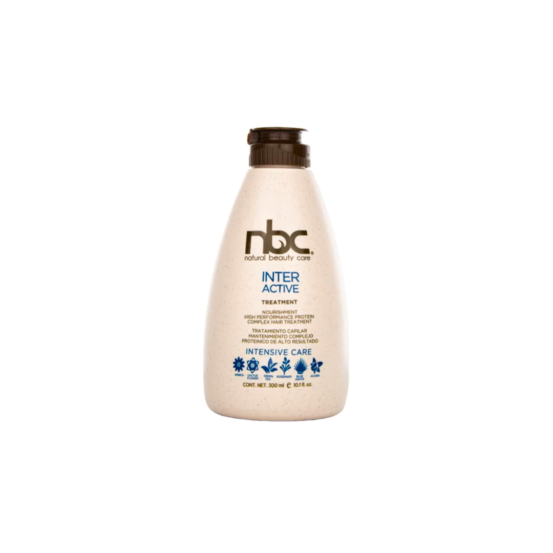 Lave el cabello con el shampoo NBC de su preferencia y elimine el exceso de agua con una toalla. Vierta una pequeña cantidad de INTER- ACTIVE en la palma de su mano y frote para activar el producto.