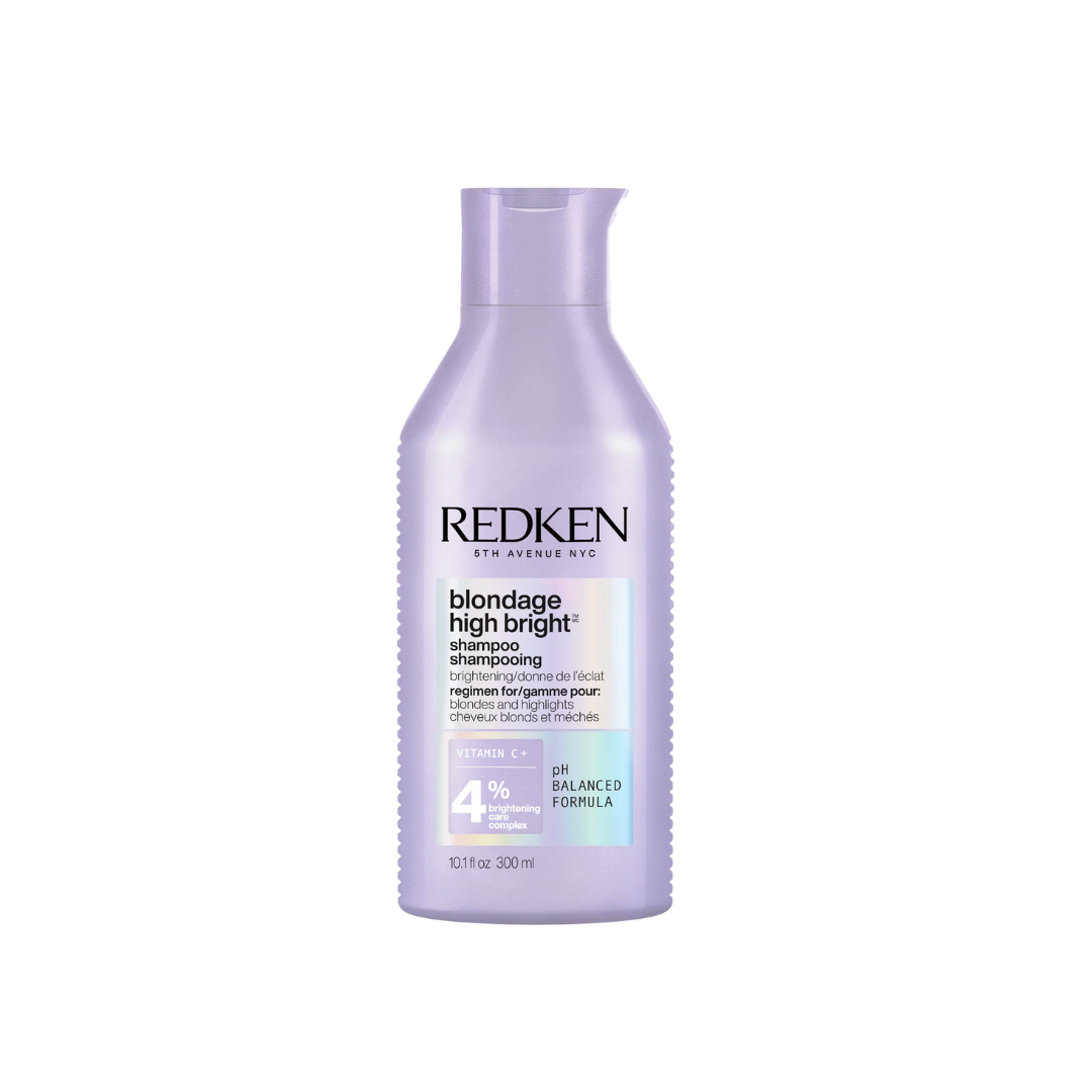Blondage High Bright Shampoo es nuestra respuesta a los rubios que pierden luminosidad y brillo en las semanas entre visitas al salón. Este shampoo es el paso 2 de la rutina completa High Bright, un nuevo sistema para el cuidado del cabello rubio potenciado por la vitamina C y el Brightening Care Complex de Redken. Este sistema elimina la acumulación y las impurezas del cabello, iluminando el cabello rubio opaco, oscurecido o mate causado por los agentes opacos y la contaminación. Obtén un rubio instantáneamente más brillante en un solo uso de todo el sistema High Bright.